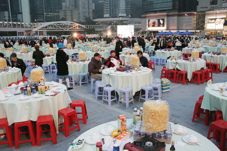 政府總部前身地段…香港中環添馬艦側的盆菜宴,由忠誠盆菜提供2006年1月8日
