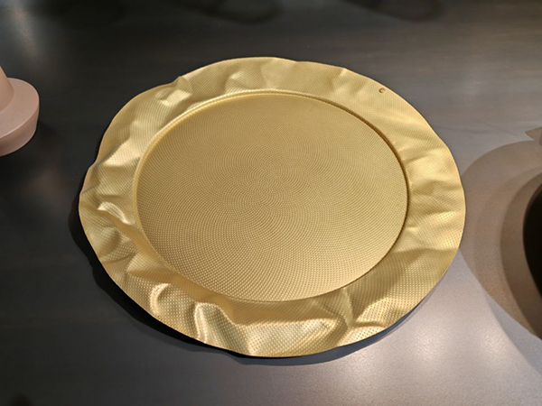 2. Round tray in brass with relief decoration